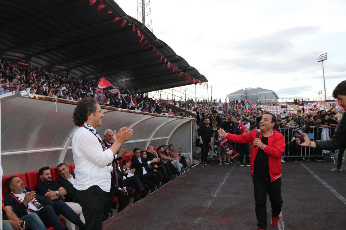 Sanatçı Celal Yarıcı, Mehmet Öndül, Şiyar Bervari’nin sahne aldığı kutlama programında seremoni için sahneye çağrılan Van Spor FK kadrosu, kulüp yönetici ve futbolcuları büyük alkış aldı.