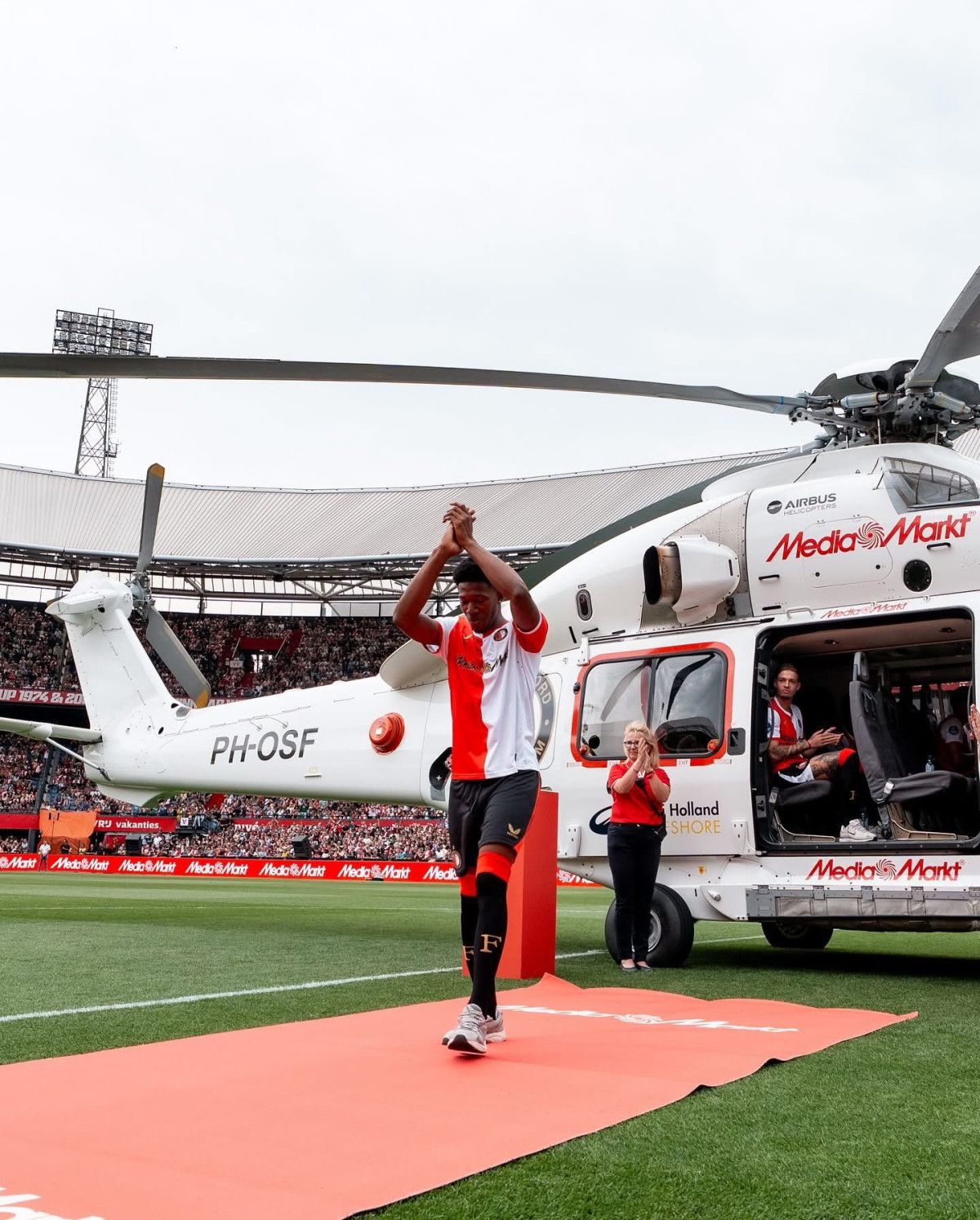 Hollanda takımı, düzenlediği tertiple yeni transferlerini helikopterle stadyumun ortasına indirdi.