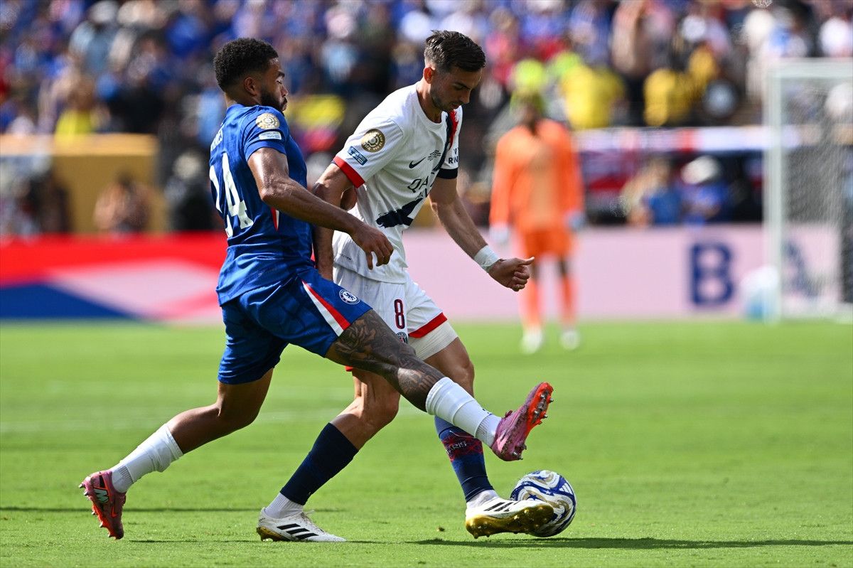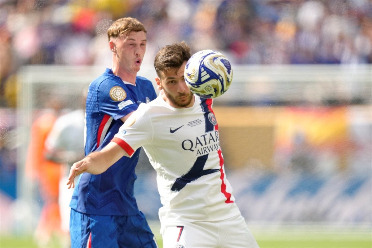 PSG’den Joao Neves, Chelsea’den Marc Cucurella’nın saçını çektiği gerekçesiyle 84. dakikada kırmızı kartla oyundan atıldı.