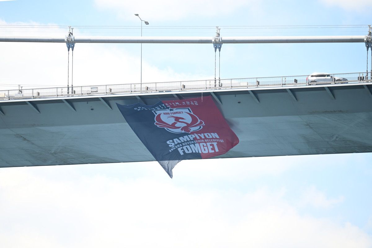 12×18 metre ebatlarındaki iki dev bayrak, ABB FOMGET’in elde ettiği şampiyonluğu simgeleyerek Boğaz’ın iki yakasını birleştiren iki köprüde yerini aldı.