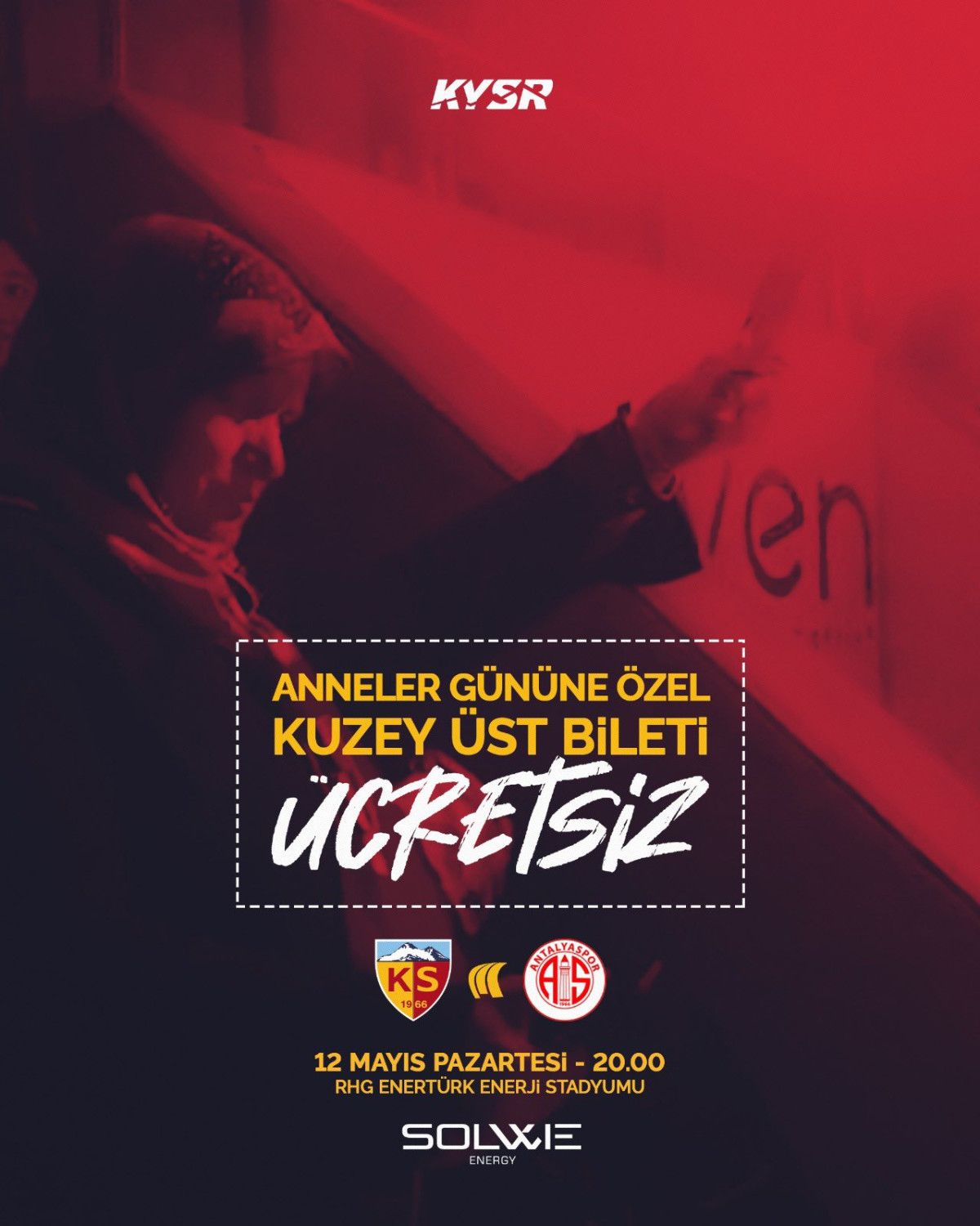 Anneler Günü’ne özel Onvo Antalyaspor maçında 1038 bayan taraftarımıza biletler fiyatsız olacak. Kayserispor Passolig’i olan bayanlarımızı ŞehrinKalbi’ne davet ediyoruz. Passolig gişeleri hafta için Kayserispor Buluşma Noktası’nda saat 17.00’ye kadar, maç günü ise stadyumda hizmet verecek.