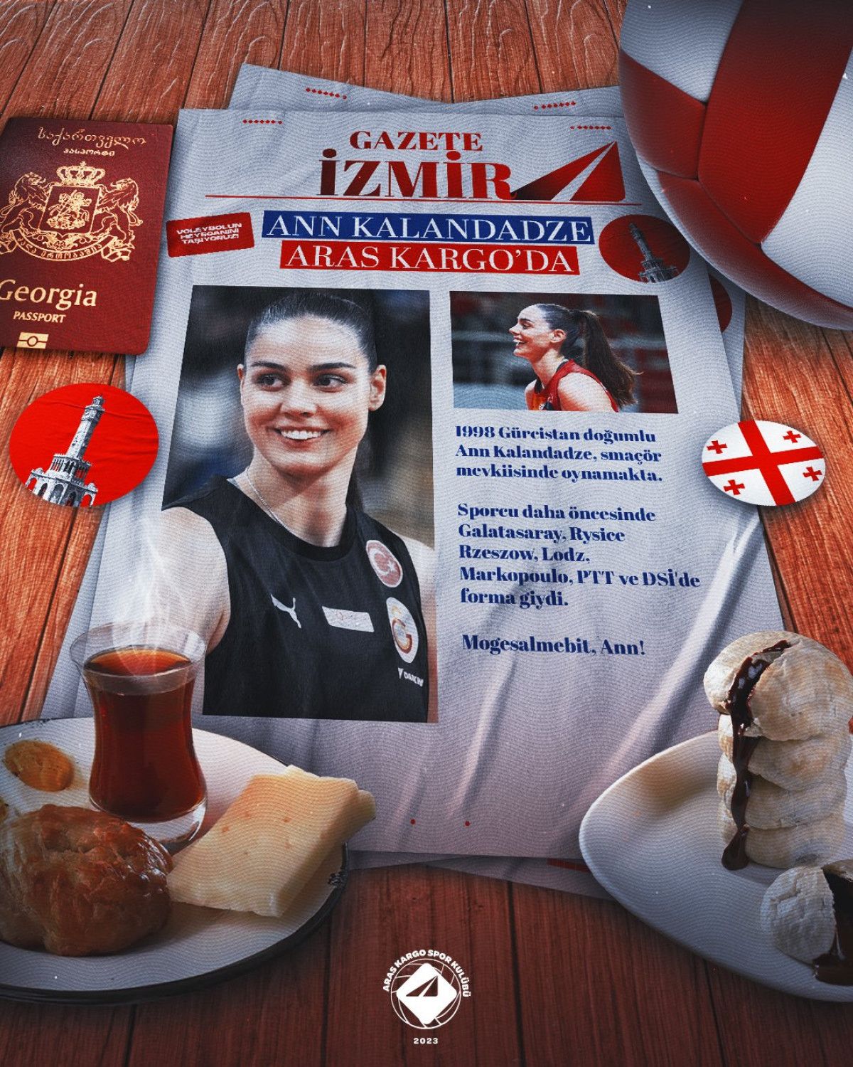 Ann Kalandadze, Aras Kargo’da. 1998 Gürcistan doğumlu Kalandadze, smaçör mevkisinde oynamakta. Atlet daha öncesinde Galatasaray, Rysici Rzessow, Lodz, Markopoulo, PTT ve DSİ’de forma giydi.