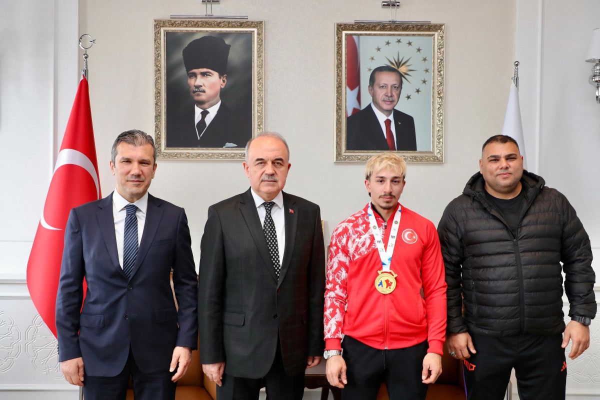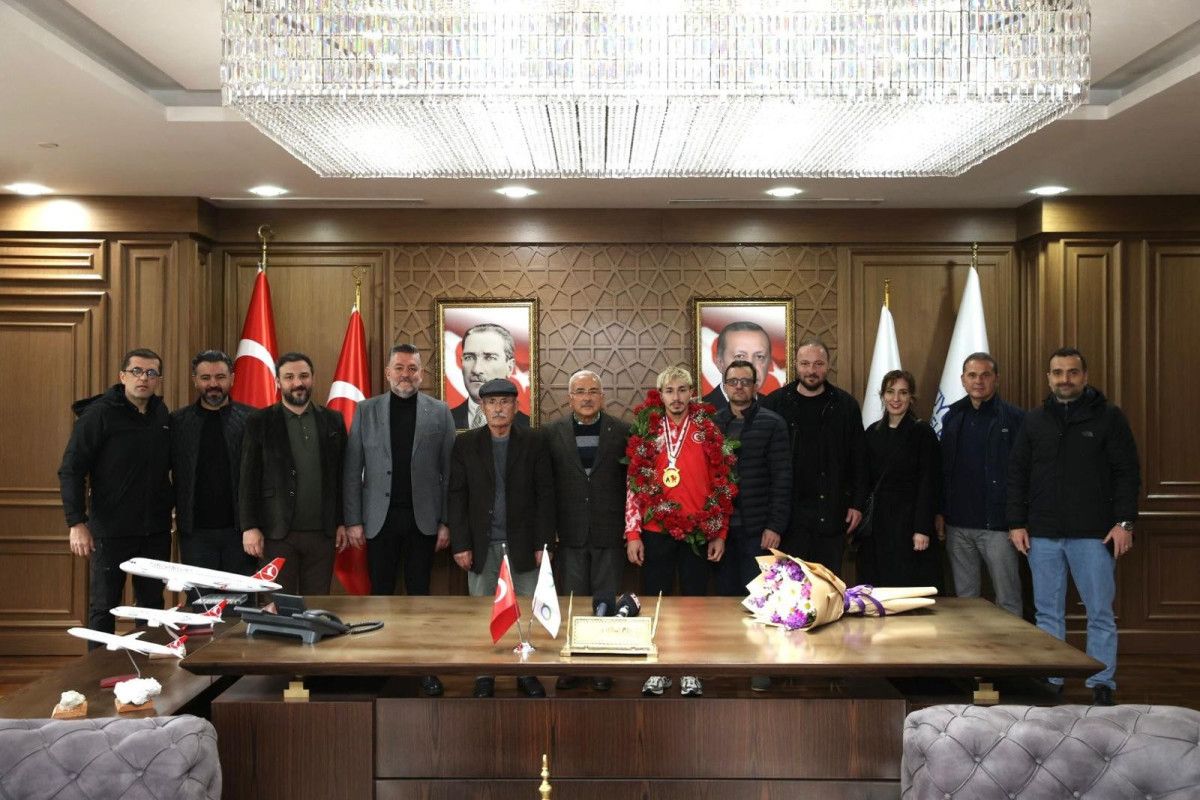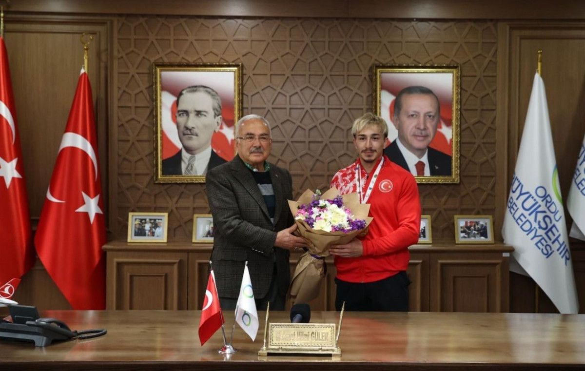 Büyükşehir Belediye Başkanı Dr. Mehmet Hilmi Güler, milli sporcuyu makamında kabul ederek tebrik etti.