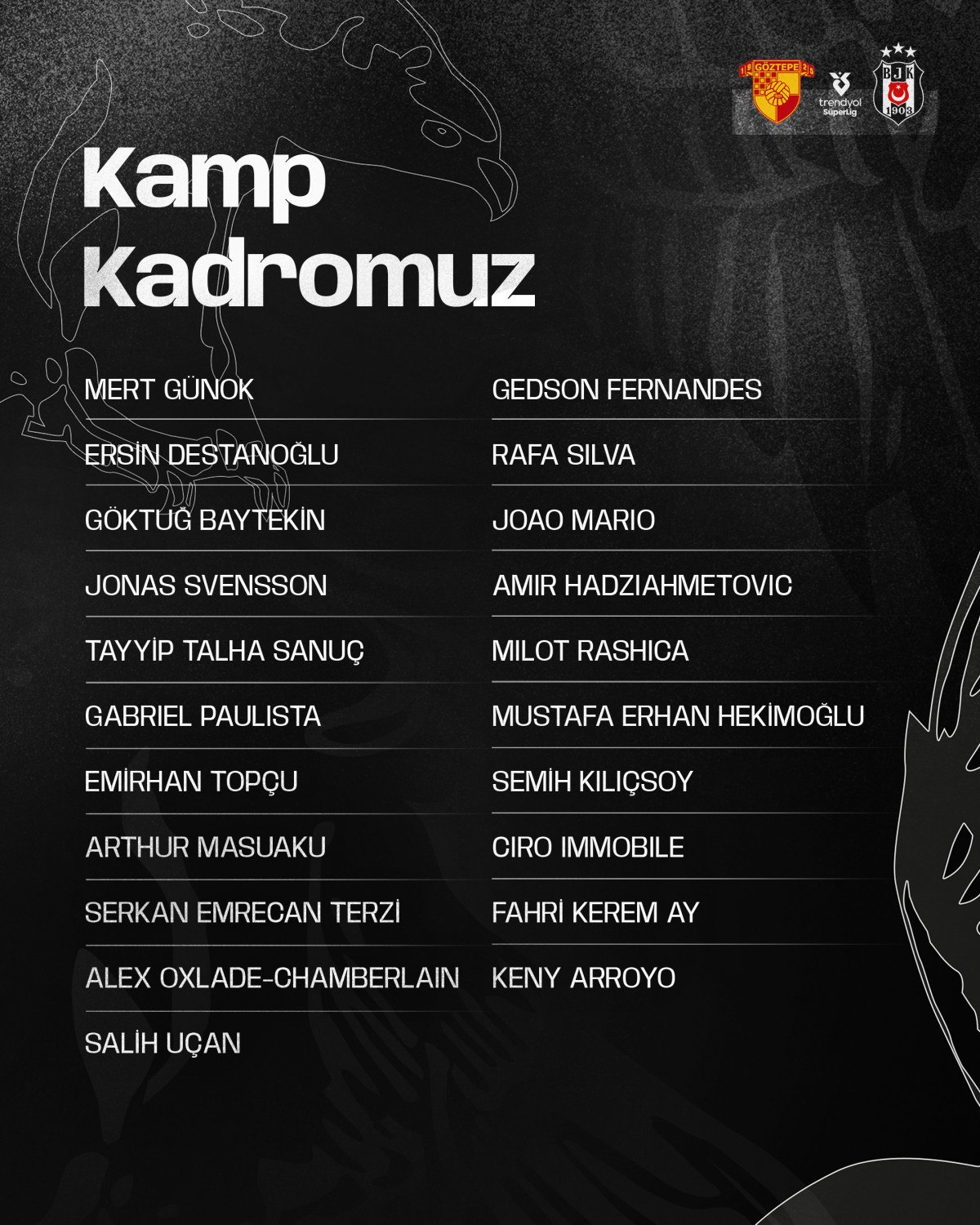 Beşiktaş’ın, Göztepe maçı kamp kadrosunda şu isimler yer alıyor: