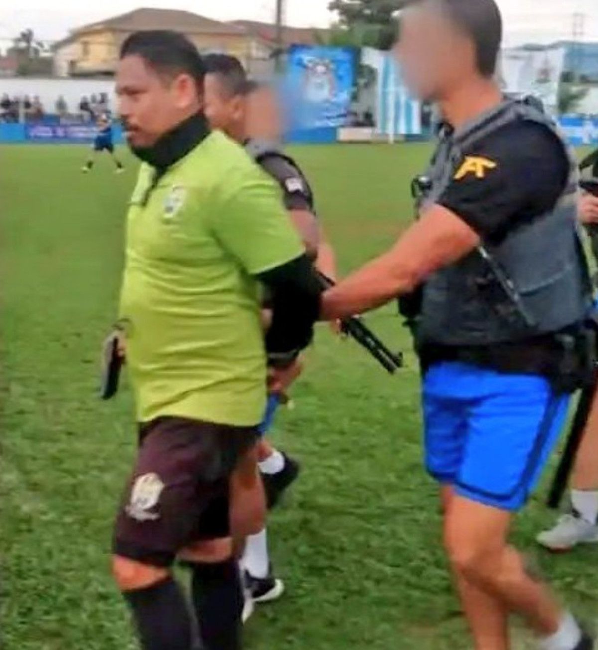 Amatör ligde oynanan bir maçta vazife yapan 38 yaşındaki hakem Ederson Carlos da Silva, alanda maçı yönettiği esnada polis tarafından tutuklandı.