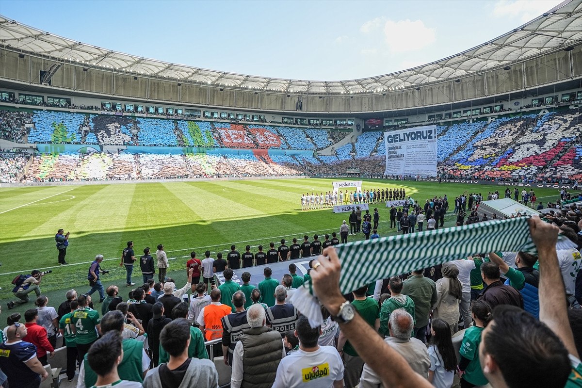Bursaspor tribünlerinde renkli görüntüler oluşurken, taraftarların hazırladığı koreografiler dikkat çekti.