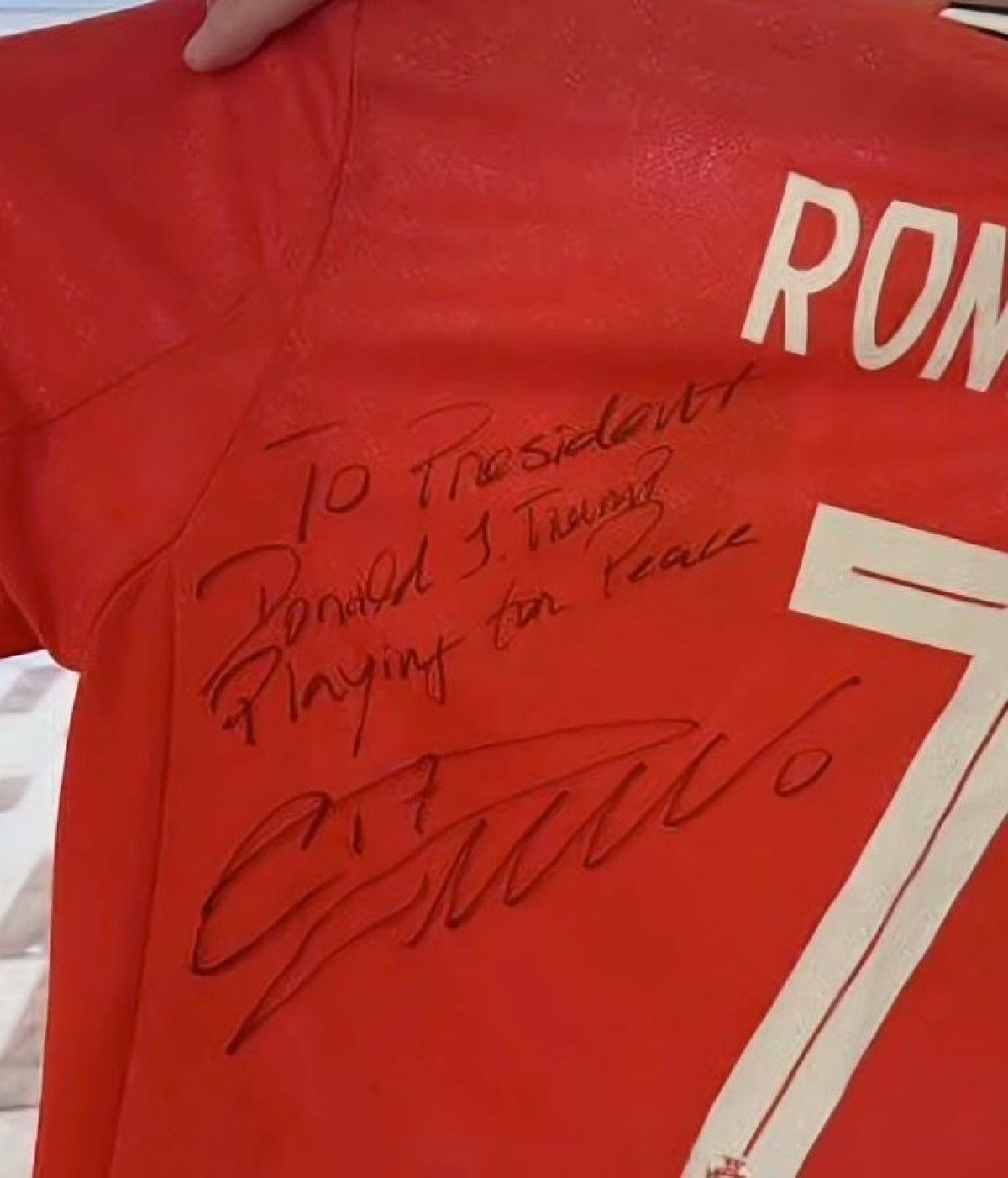 Buna nazaran Trump’a Ronaldo tarafından imzalanan bir Portekiz kadrosu forması armağan edildi.