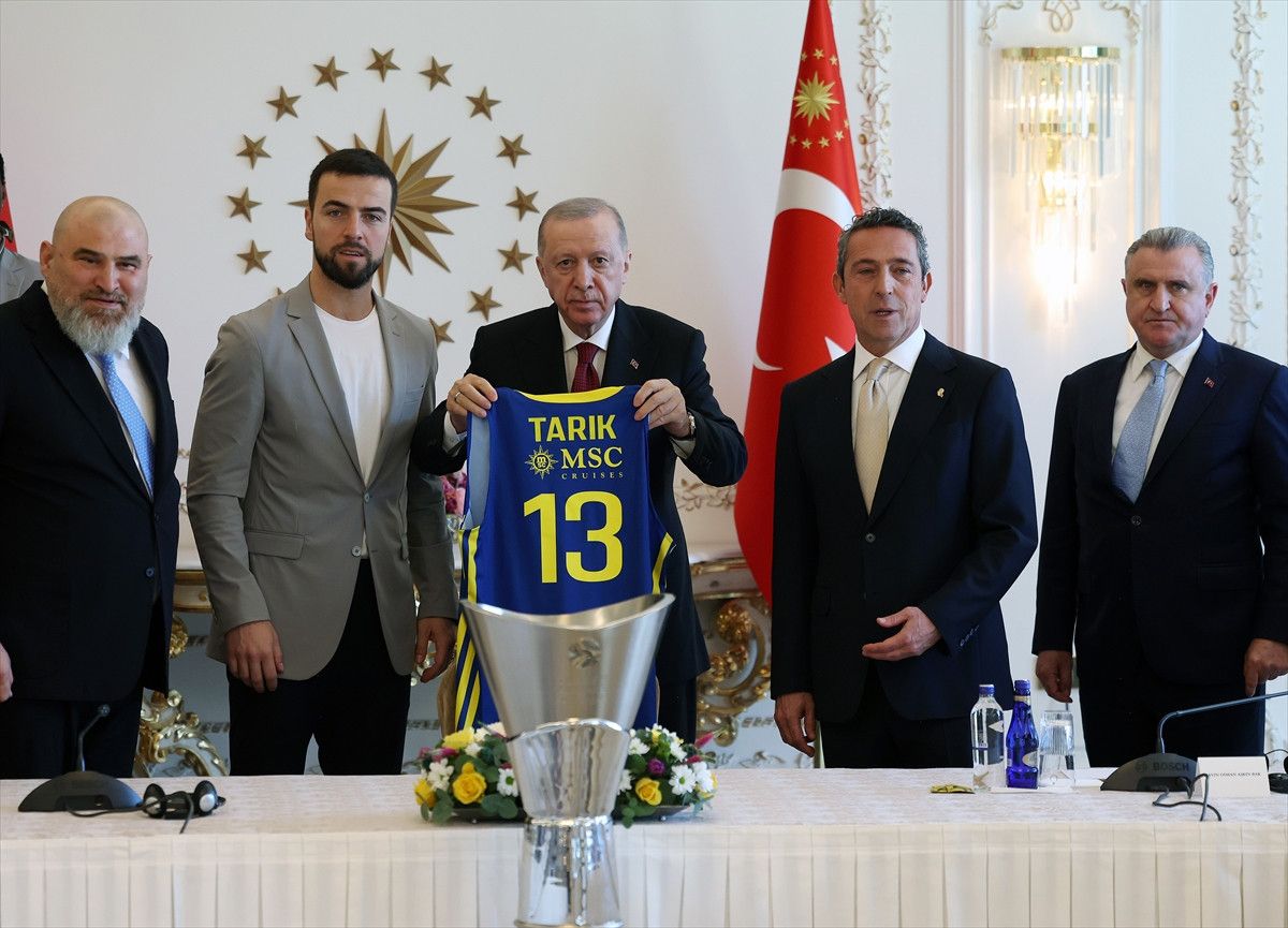 Cumhurbaşkanı Recep Tayyip Erdoğan, EuroLeague’de şampiyon olan Fenerbahçe Erkek Basketbol Ekibi oyuncuları ve teknik heyetini kabul etti.