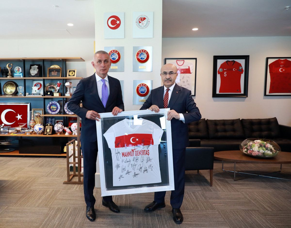 Ziyaretin sonunda TFF Başkanı Hacıosmanoğlu, Mahmut Demirtaş’a üzerinde isminin yazılı olduğu ve imzalı A Ulusal Grup forması takdim etti.