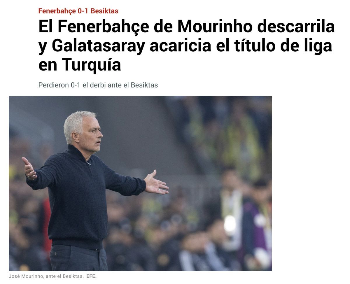 Haberde ayrıyeten, “Jose Mourinho’nun Türkiye’deki ilk sezonunu lig şampiyonu olarak tamamlama umudunu neredeyse büsbütün sona erdi. Şu anda Galatasaray’ın 8 puan gerisindeler ve 4 maç kala Mourinho şampiyonluğun öteki yere gideceğini biliyor.” sözleri kullanıldı.