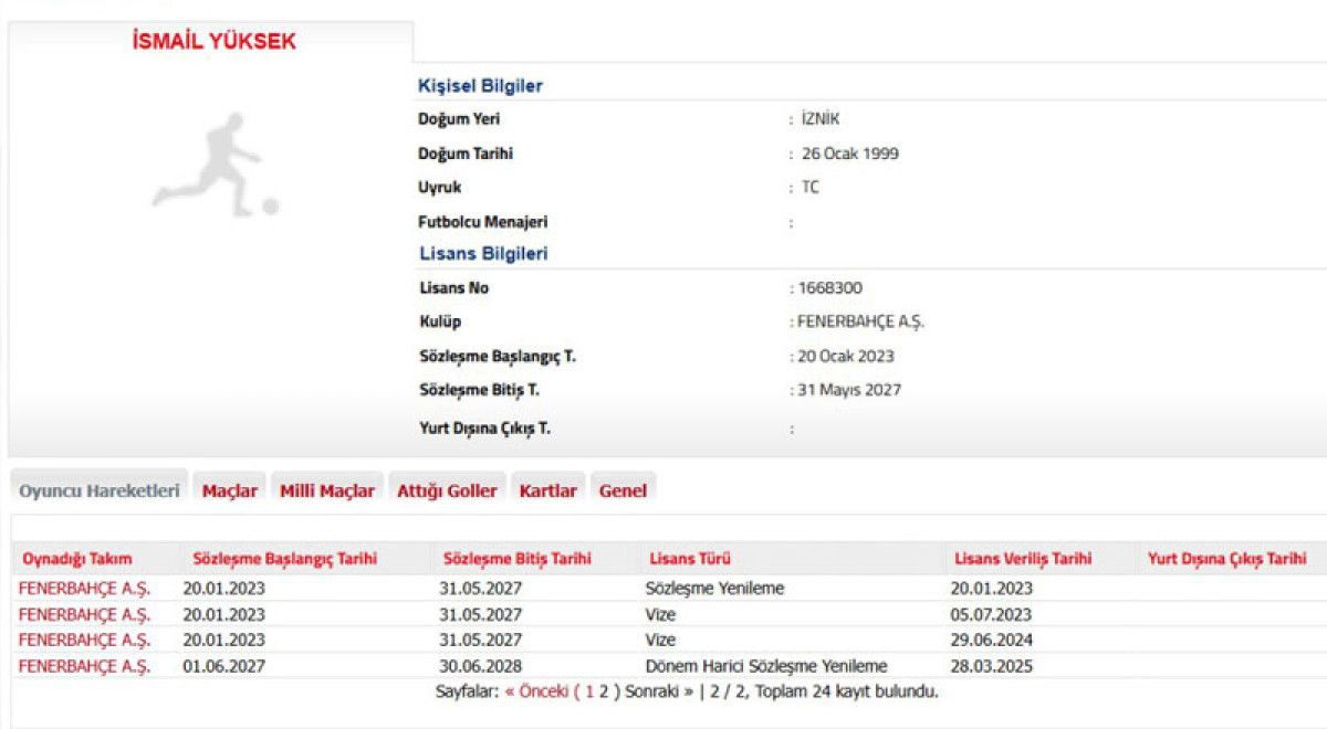 26 yaşındaki futbolcunun mukavelesi Türkiye Futbol Federasyonu’nun resmi internet sayfasında güncellendi.