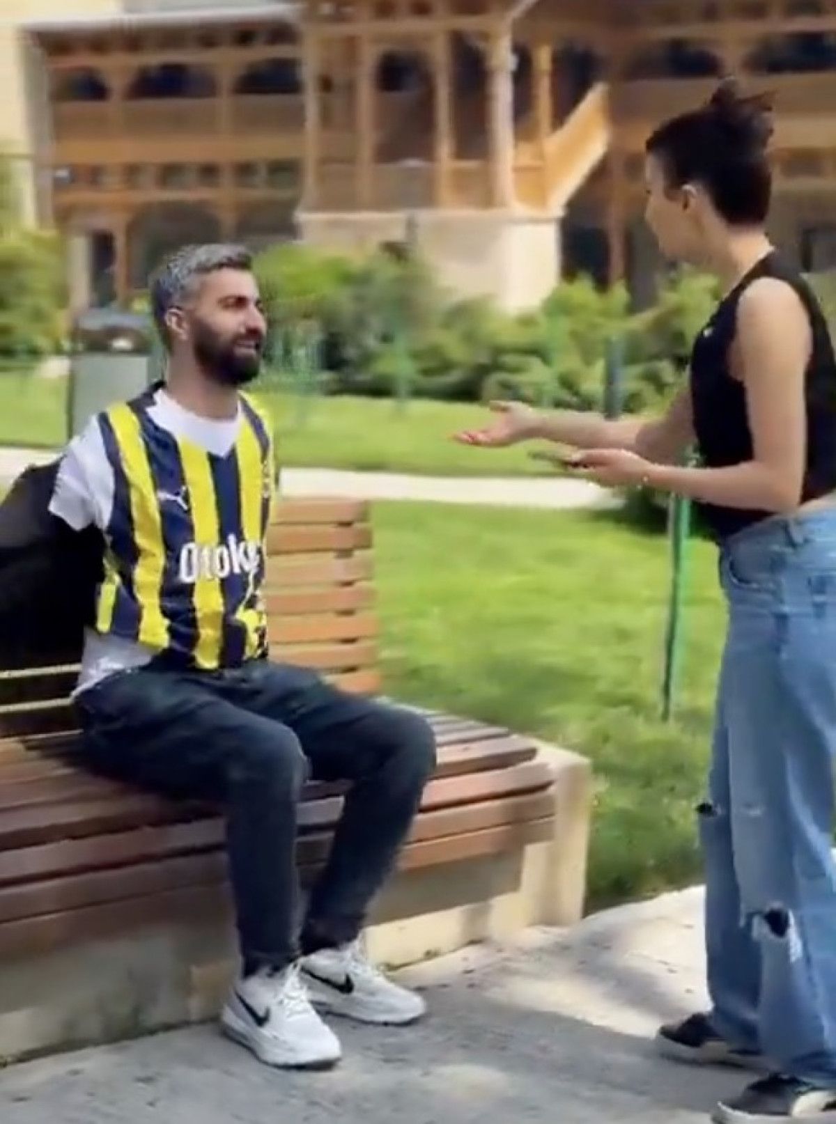 Azerbaycan’da çekilen bir görüntüde Fenerbahçe formalı genç tiye alındı.