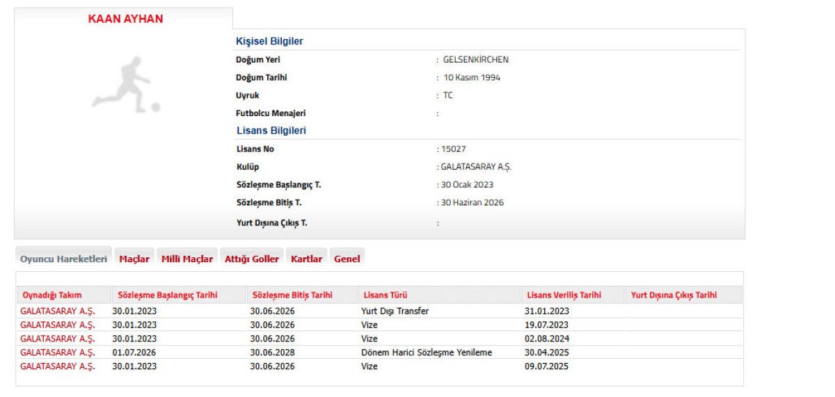 Ayrıca Kaan Ayhan’ın kontratının ise 2028 yılına kadar uzatıldığı TFF’ye bildirildi.