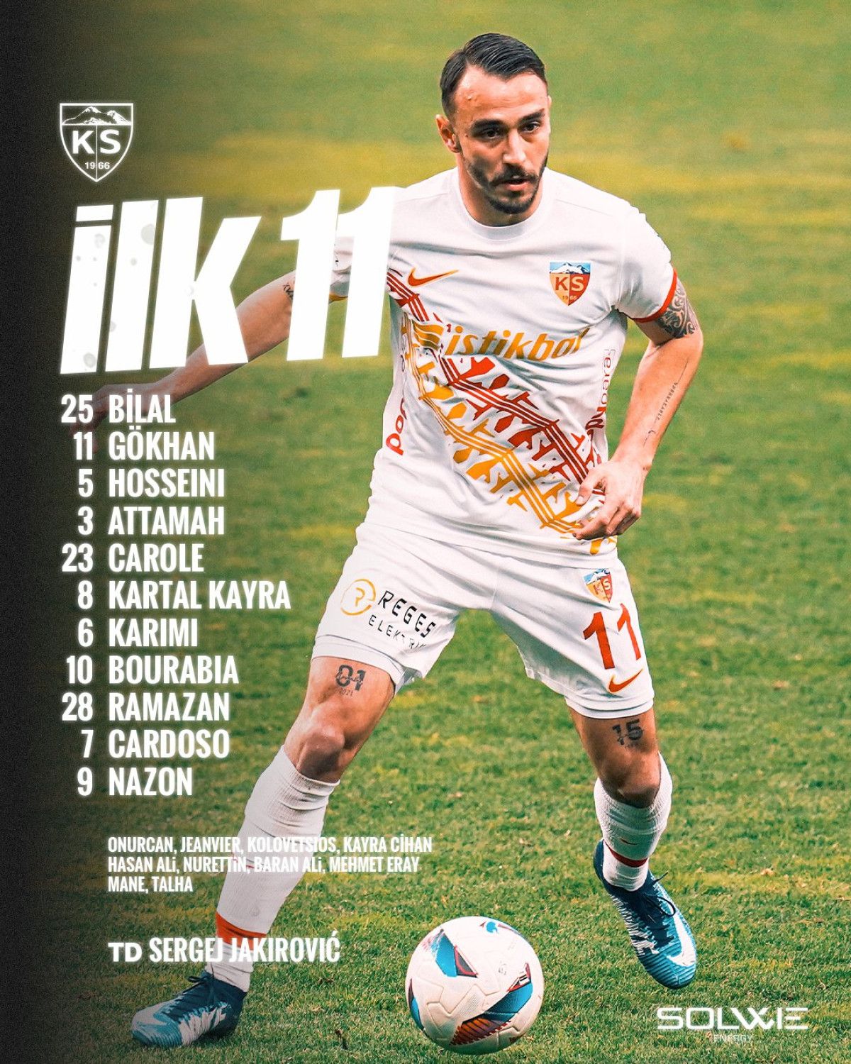Kayserispor: Bilal, Gökhan, Hosseini, Attamah, Carole, Kartal Kayra, Karimi, Bourabia, Ramazan, Cardoso, Nazon