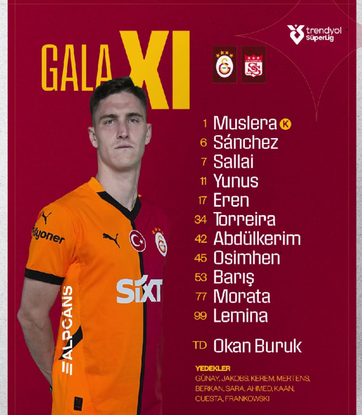 Galatasaray – Sivasspor maçının birinci 11’leri