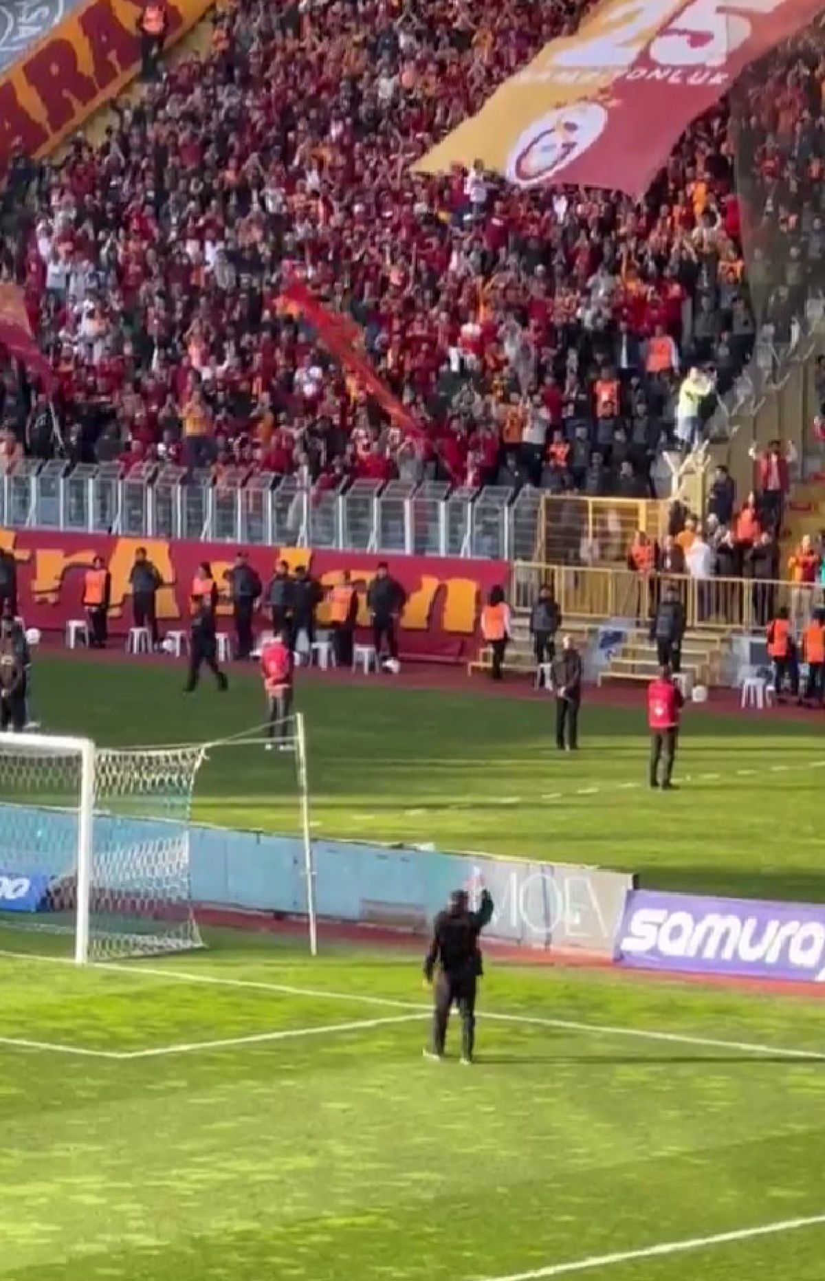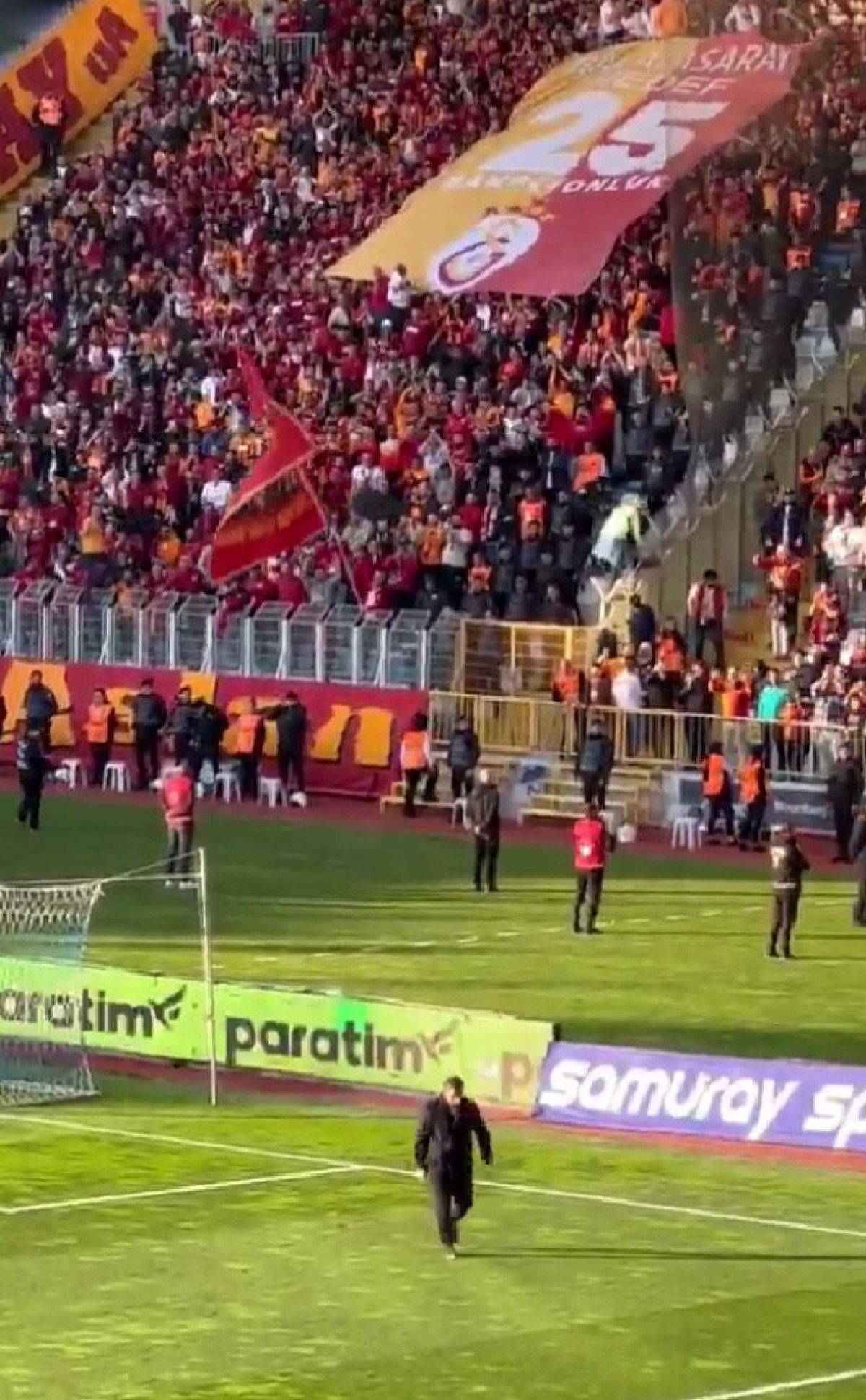 Yedek kulübesinden çıkıp taraftarın olduğu kısma giden Arda Turan sevgi gösterisine selamla karşılık verdi.