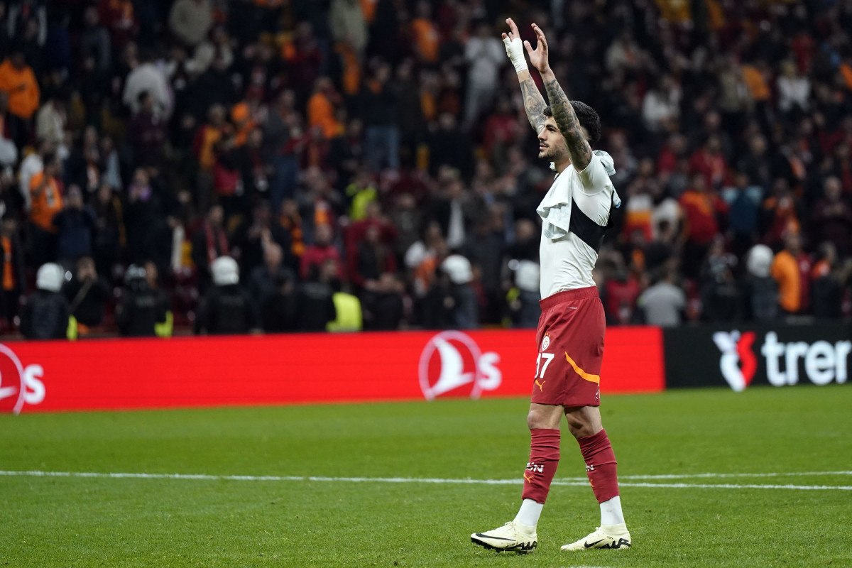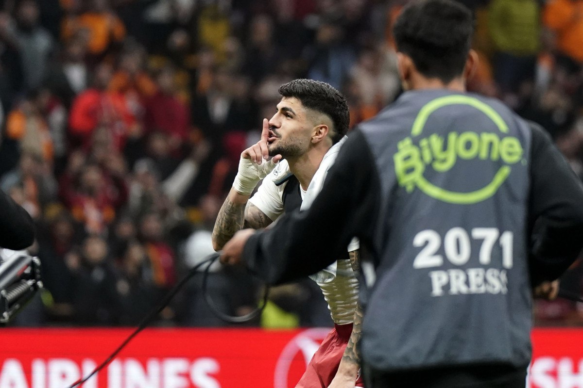 Galatasaraylı futbolcu Eren Elmalı, kale arkasındaki taraftarların isteğini kırmadı ve 3’lü çektirdi.