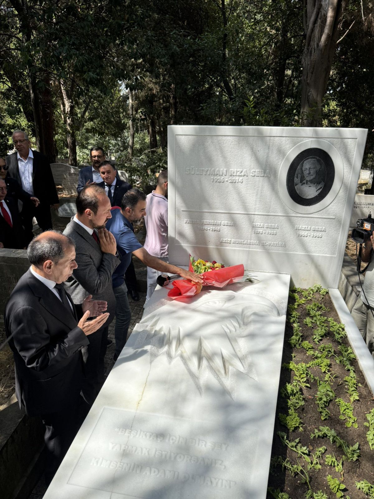 Dursun Özbek ve beraberindekiler, birebir mezarlıkta bulunan Beşiktaş Kulübü’nün efsane başkanı Süleyman Seba’nın kabrini de ziyaret etti.
