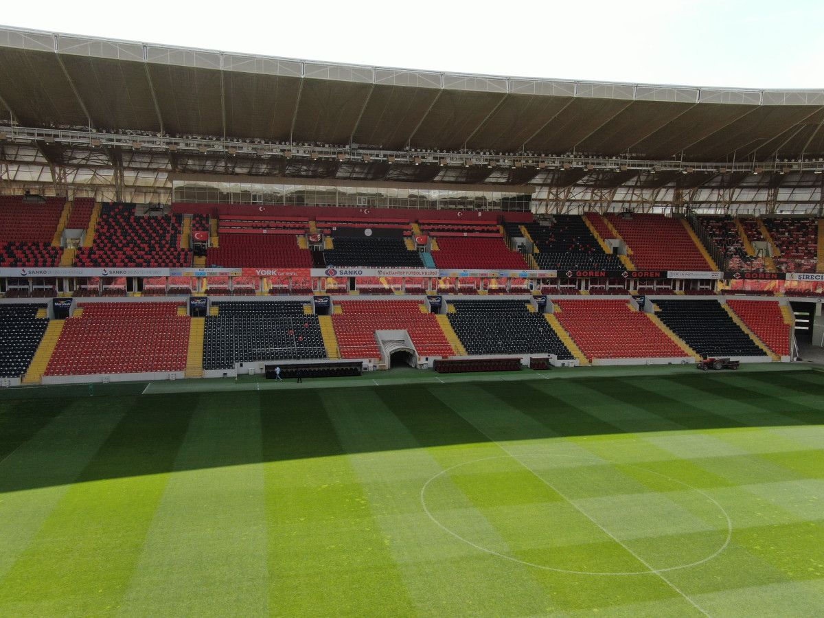 14 Mayıs Çarşamba günü saat 20.45’te başlayacak finali öncesi baklava desenli dış görünümüyle dikkat çeken 35 bin 574 kişilik Gaziantep Stadyumu’ndaki hummalı çalışmalar aralıksız devam ediyor.
