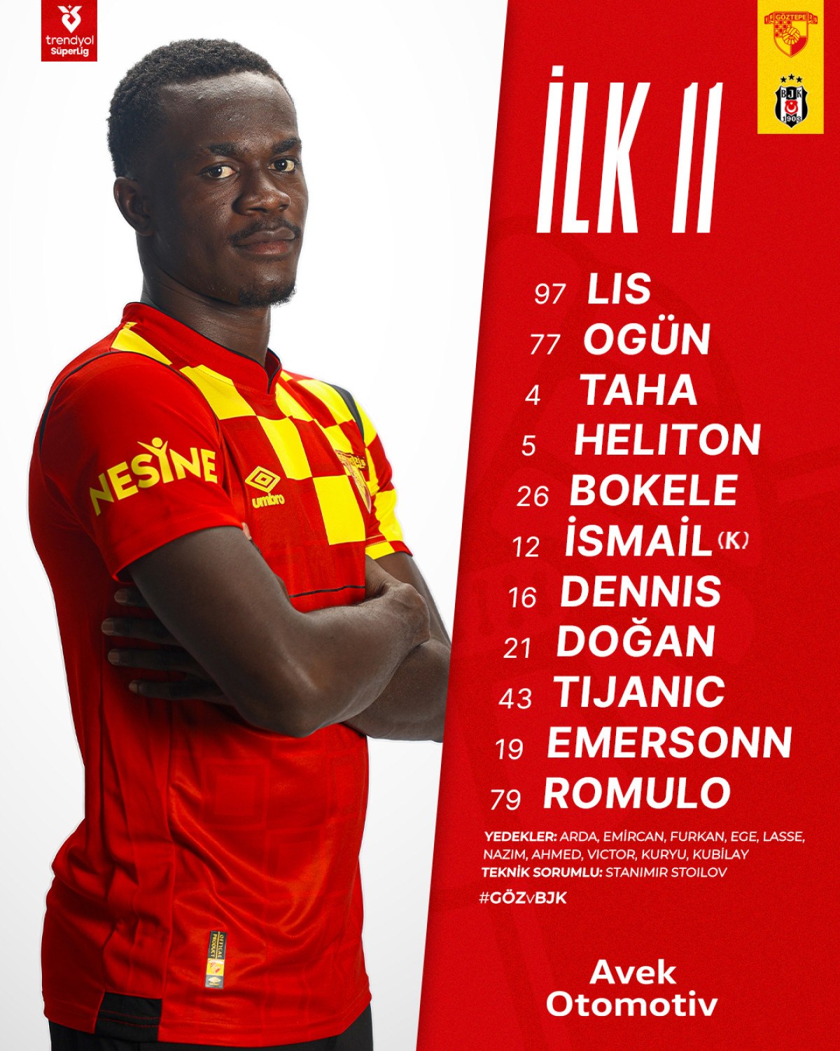Göztepe: Lis, Ogün, Taha, Heliton, Bokele, İsmail, Dennis, Doğan, Tijanic, Emersonn, Romulo