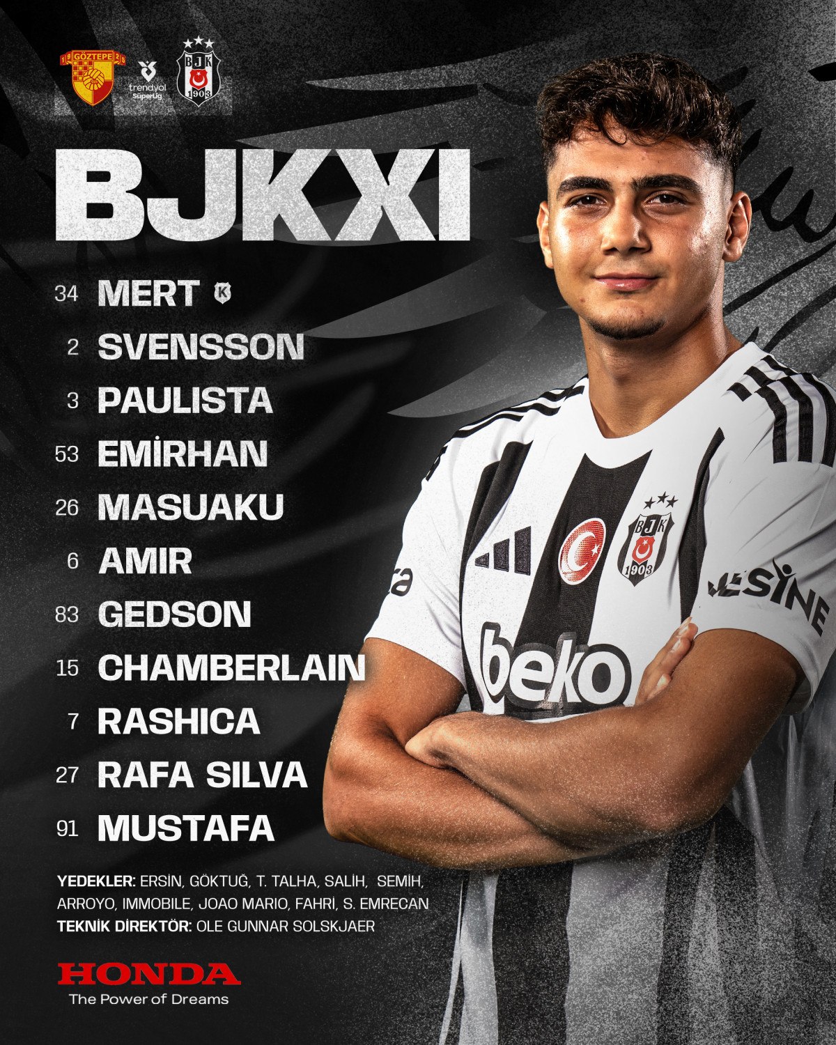 Beşiktaş: Mert, Svensson, Paulista, Emirhan, Masuaku, Amir, Gedson, Chamberlain, Rashica, Rafa Silva, Mustafa