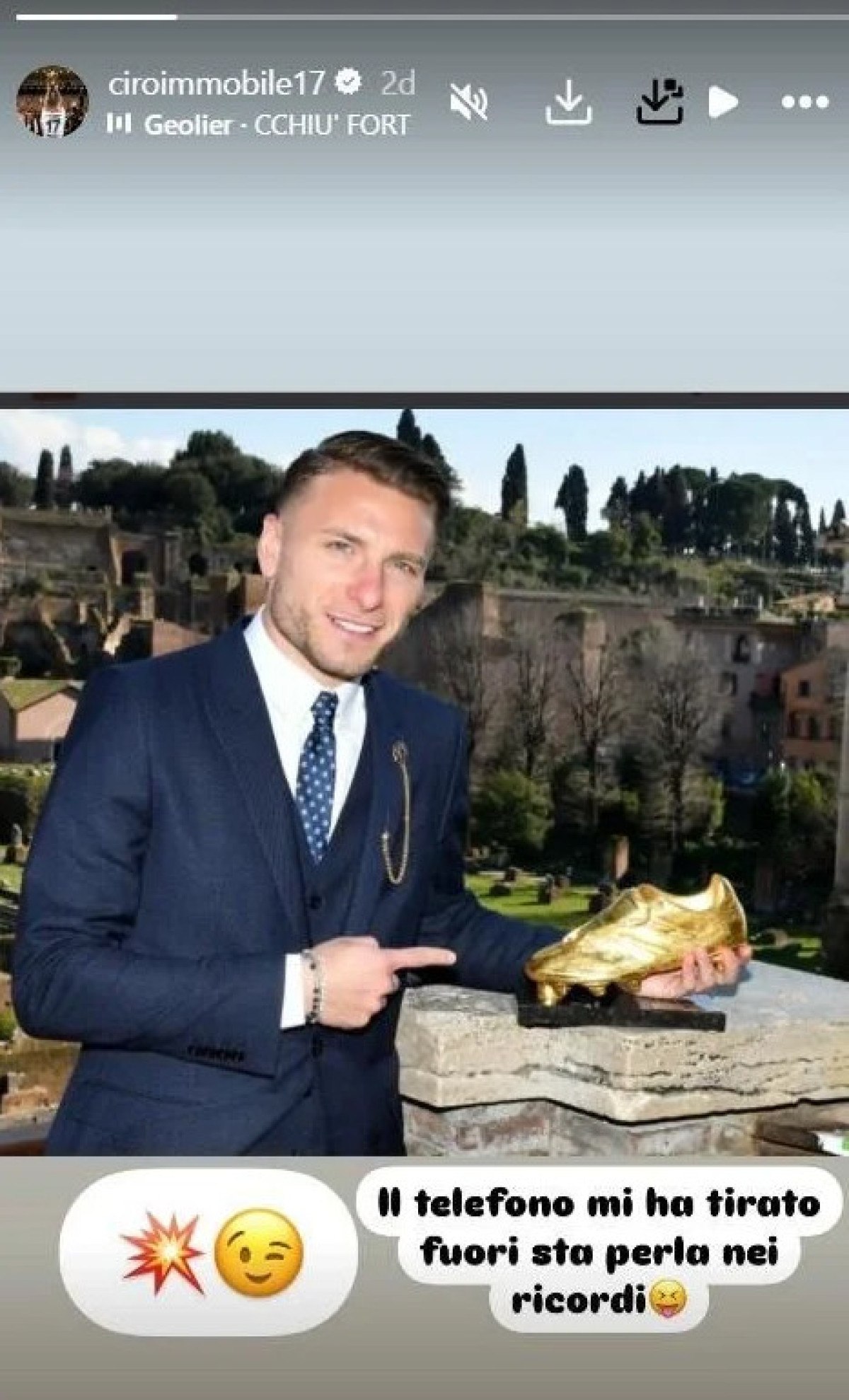 Immobile, Göztepe maçının ardından sosyal medyadan yaptığı açıklamada, Altın Ayakkabı ile fotoğrafını paylaştı. Immobile, bu paylaşımında, “Telefon, bu mücevheri anılardan çıkardı.” ifadelerini kullandı.