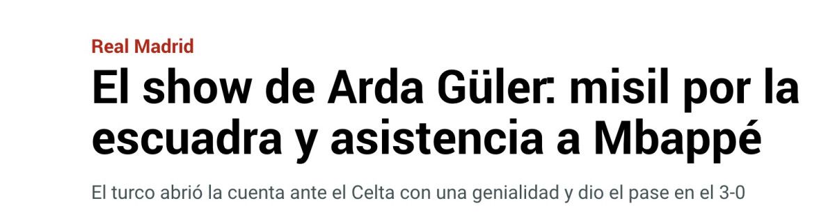 “Arda Güler bir golcü ve bu goller Getafe ve Celta’ya karşı oynanan son iki lig maçında belirleyici oldu. Ve bir de duran top var. Madrid’in sol ayağında bir mayın var. Kullandığı kornerler rakip savunmalar için bir kabus.
