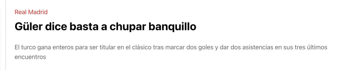 “Ancelotti, Güler konusunda yaptığı yanılgının ispatlarıyla yüzleşti. Carlo Ancelotti bu dönem kaç planın bozulduğunu bilmiyor. Soyunma odasında temel olarak gördüğü hiyerarşi çöktü ve bir oyuncuya yapılan haksızlığı ortaya çıkardı: Arda Güler.
