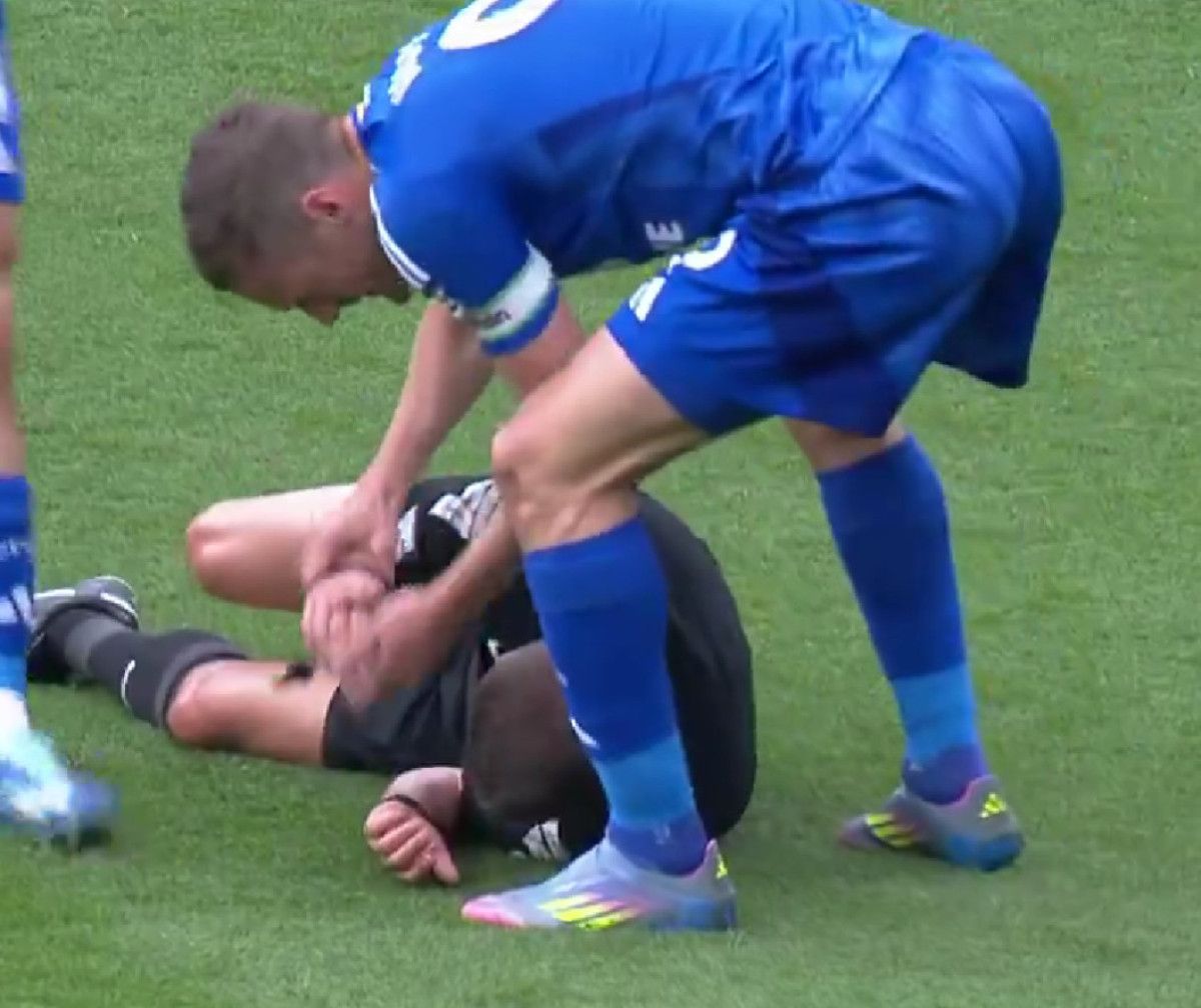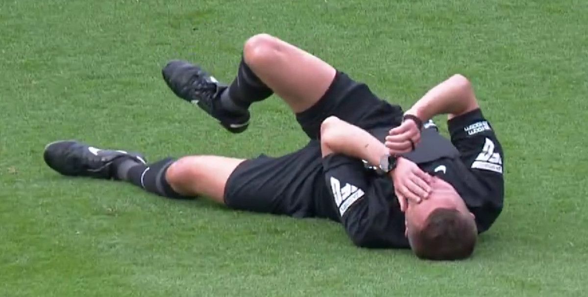Oyunun durmasının akabinde hakem Webb, tıbbi yardım gelene kadar alanda yatmaya devam etti.