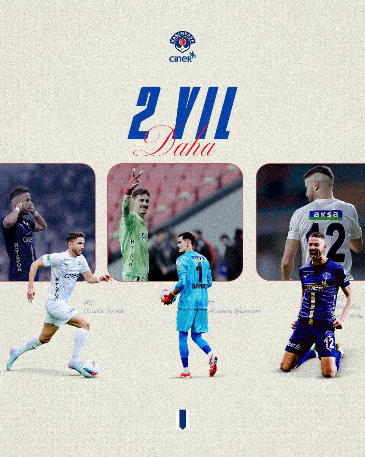 Süper Lig gruplarından Kasımpaşa; Mortadha Ben Ouanes, Andreas Gianniotis ve Claudio Winck ile 2027 yılına kadar yine muahedeye vardı.