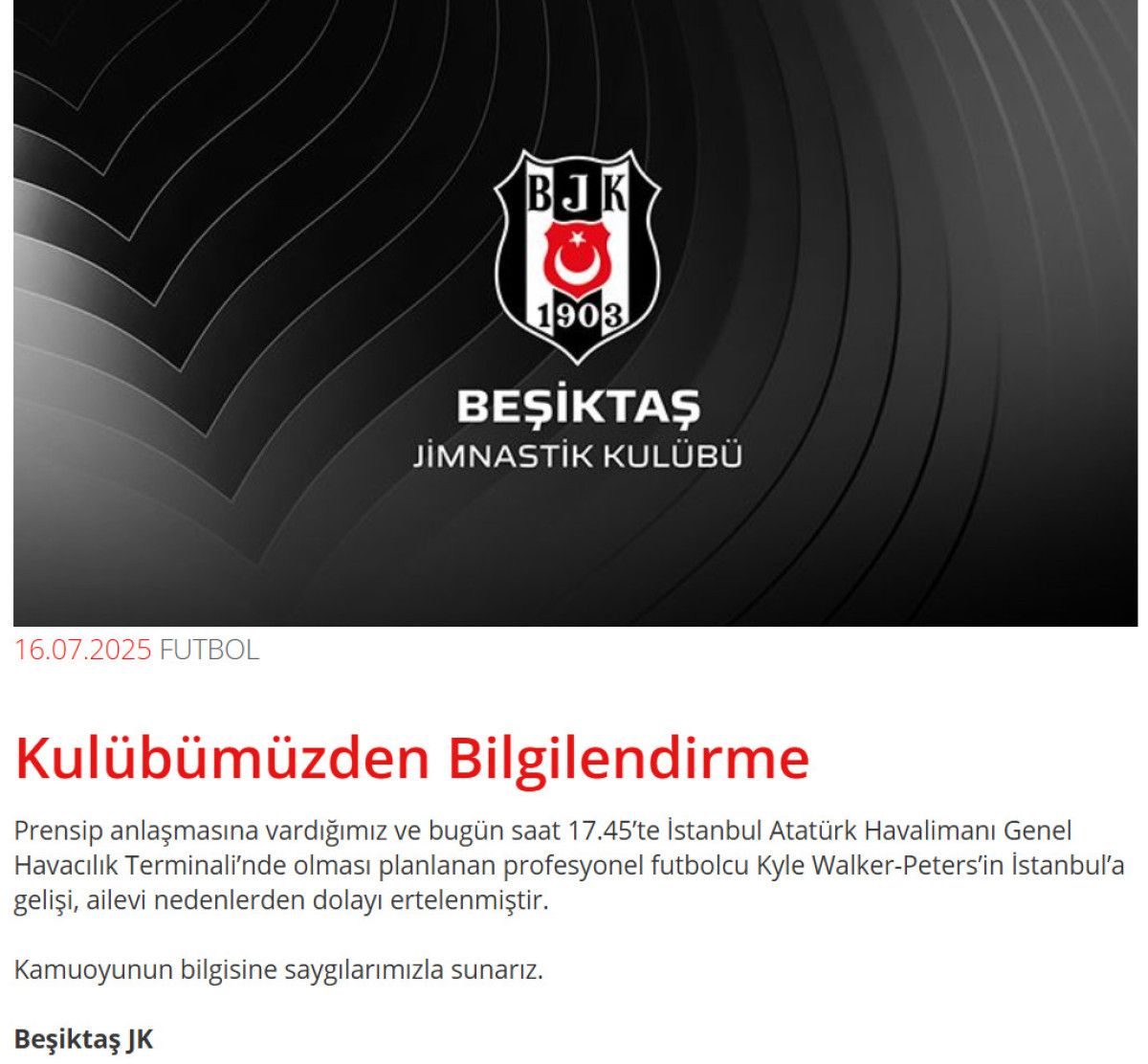 Ancak Beşiktaş Kulübü’nden yapılan açıklamada, futbolcunun gelişinin ailevi sebeplerle ertelendiği bildirildi.