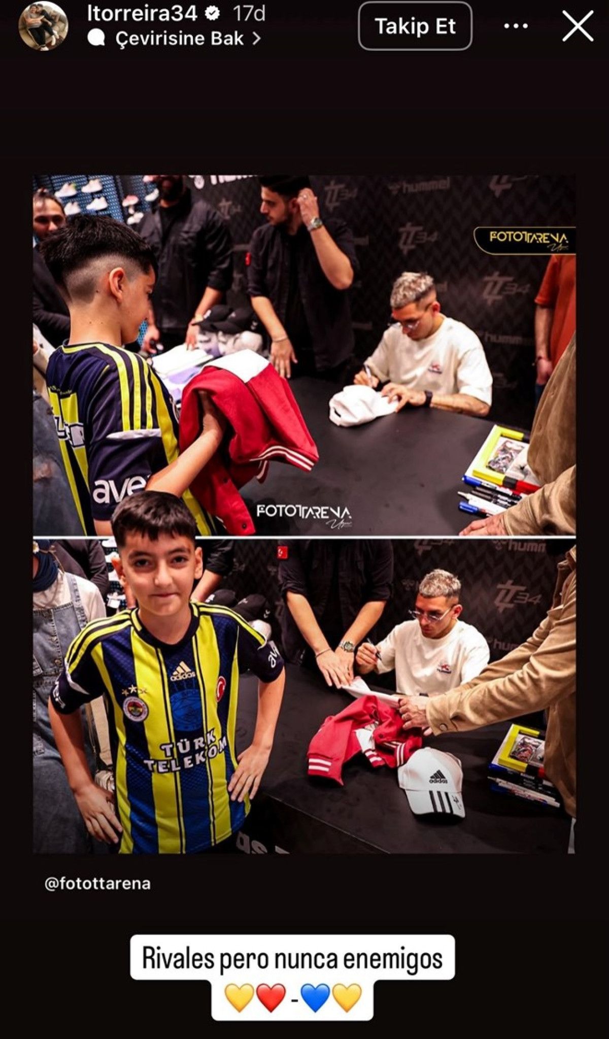 Sevenlerine imza dağıtan 29 yaşındaki orta saha, toplumsal medya hesabından dikkat çeken bir kare paylaştı.