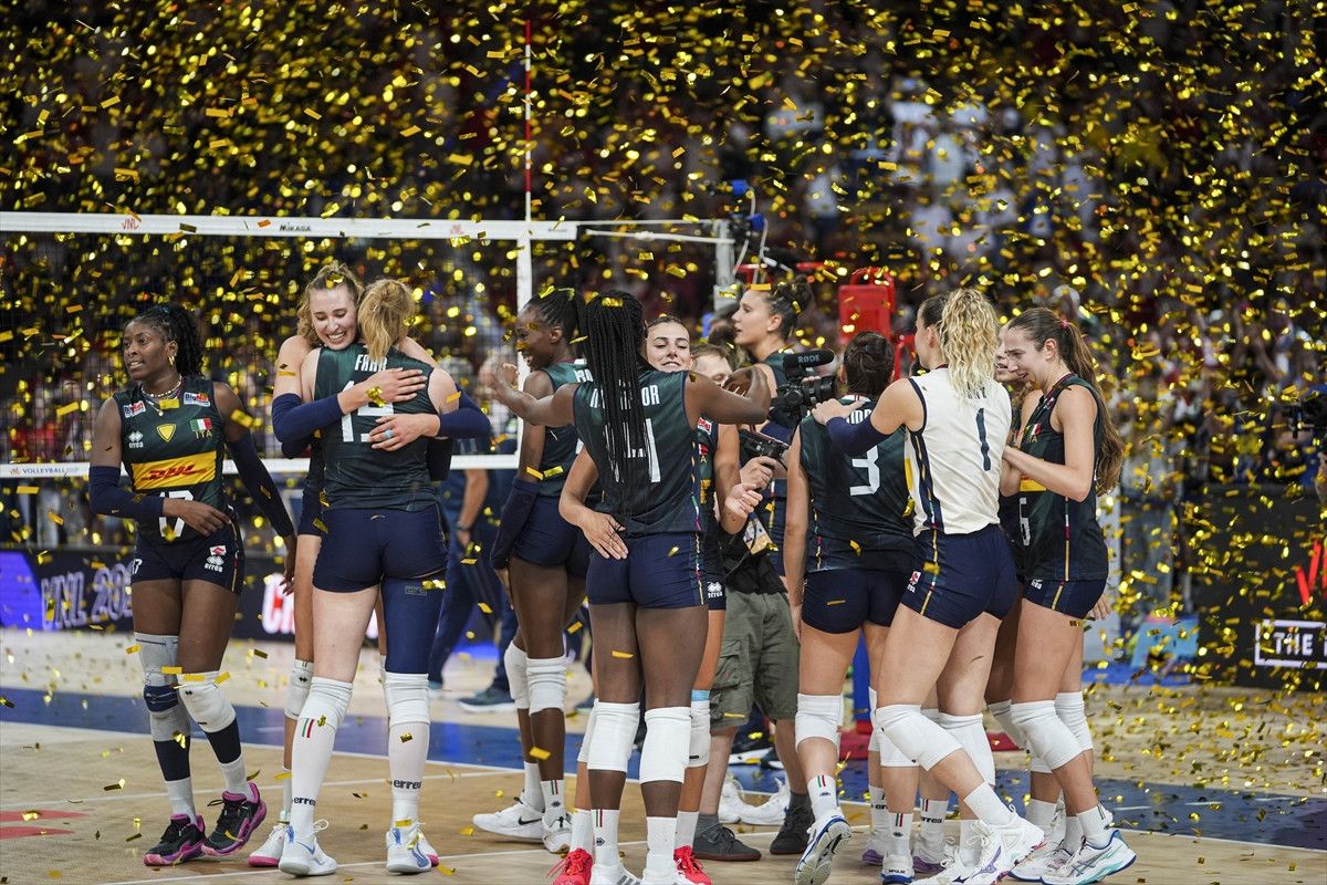 Kupayı alana getiren İtalya kaptanı Anna Danesi, ekip arkadaşlarıyla büyük sevinç yaşadı.