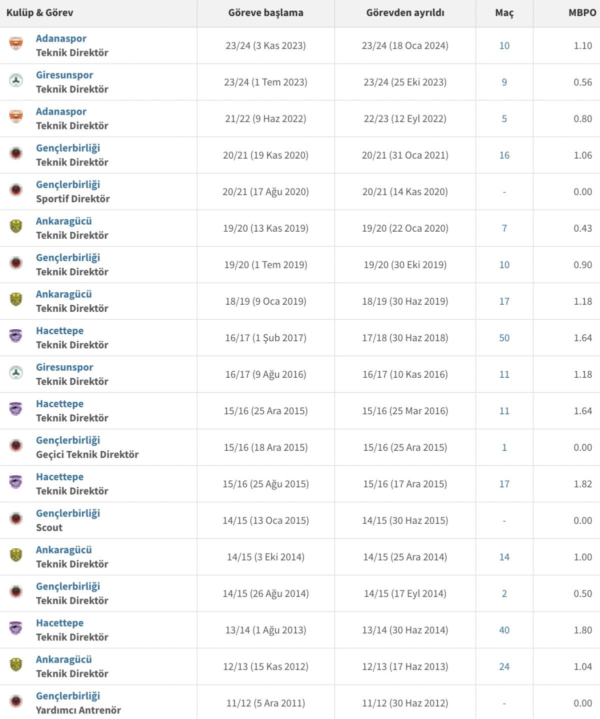 Böylelikle MKE Ankaragücü, bu sezon 6. farklı teknik adamla çalışacak.