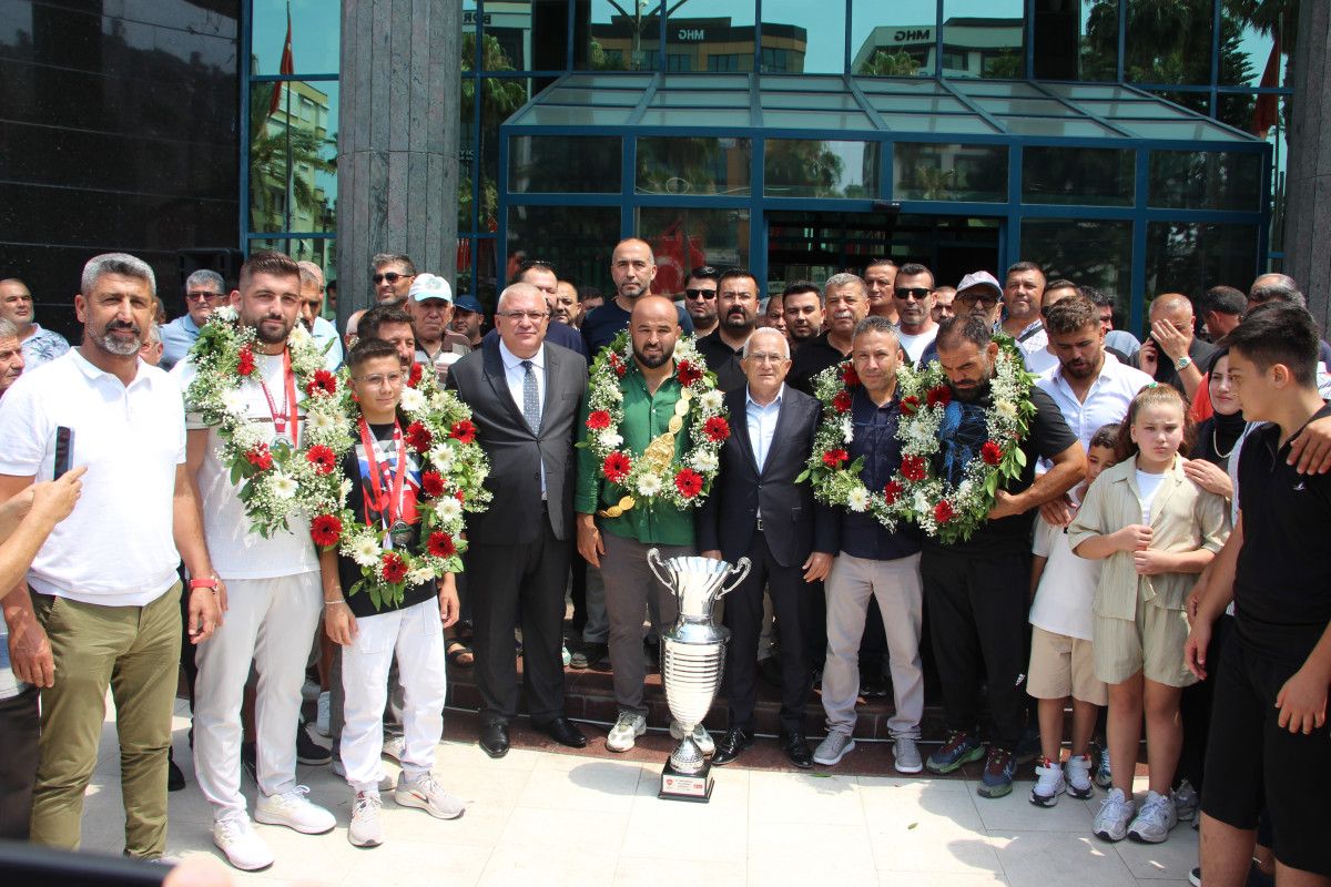 664. Tarihi Kırkpınar Yağlı Güreşleri’nde altın kemerin sahibi olan Orhan Okulu ve hocası Kemal Yılmaz; Başaltı birincisi Tufan Hoş ve Minik 1 şampiyonu Turgut Buğra Arı ile birlikte Kumluca’ya gelişinde ilçe girişinde güreşseverler tarafından karşılandı.