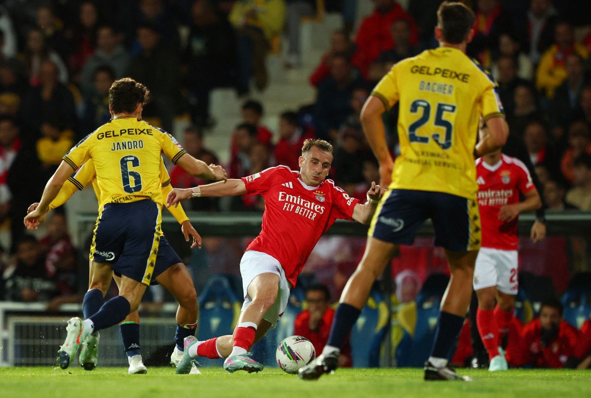 Antonio Coimbra da Mota Stadı’nda oynanan ve ulusal futbolcular Kerem Aktürkoğlu ile Orkun Kökçü’nün birinci 11’de başladığı maçta konuk takım, Orkun’un pasını uygun kıymetlendiren Norveçli kanat oyuncusu Fredrik Aursnes’in golüyle 7. dakikada 1-0 öne geçti.