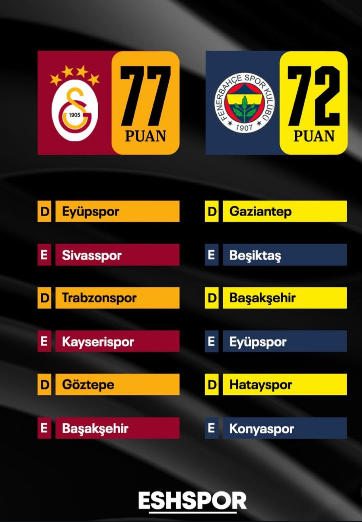 Galatasaray ise 77 puanla zirvedeki yerini korurken, sezonun bitimine yalnızca 6 maç kala sarı-kırmızılılar şampiyonluk için önemli bir avantaj elde etti.