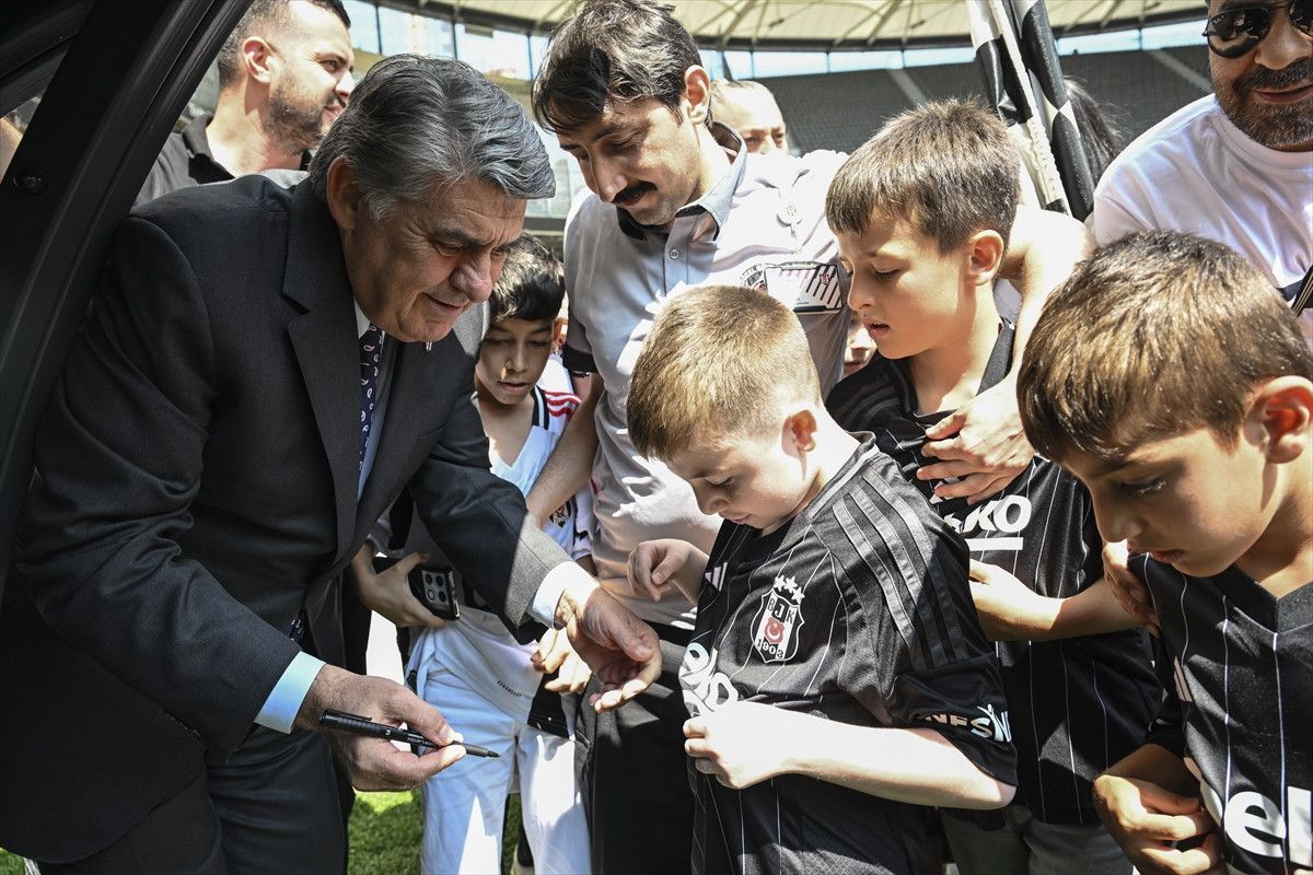 Stadyum ve müze cinslerinin akabinde alana çıkarılan çocuklar, burada fotoğraf çektirdikten sonra Beşiktaş Başkanı Serdal Adalı’yla bir ortaya geldi.