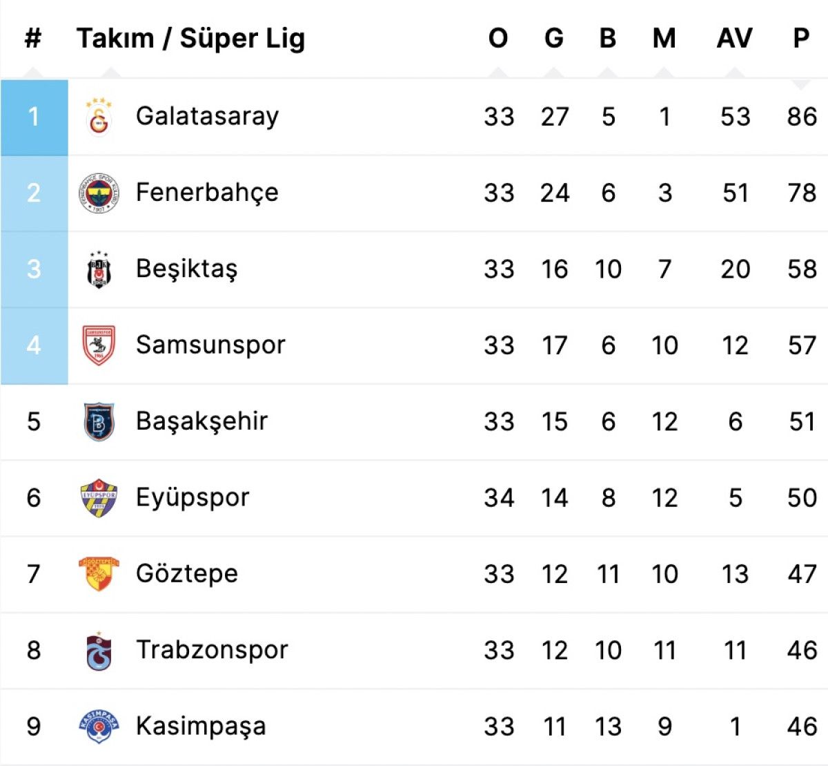 Süper Lig’de puan durumu: Şampiyonluk bu hafta netleşiyor…