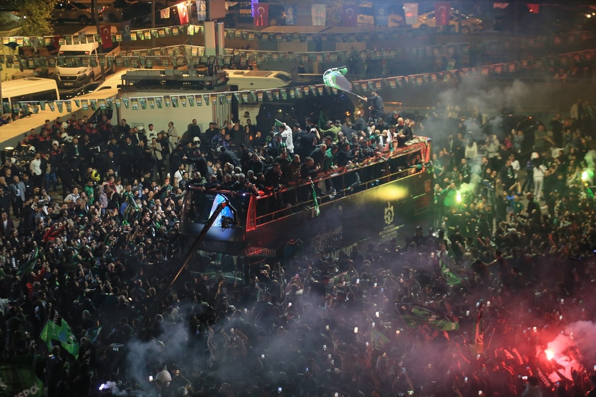 Alana üstü açık otobüsle gelen Körfez ekibi, taraftarlarla marşlar söyleyip bayraklar sallayarak Süper Lig’e çıkmanın coşkusunu yaşadı.