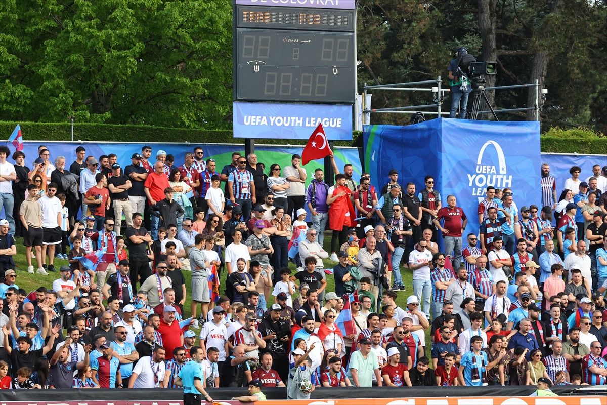Maçın ikinci yarısında ise Trabzonsporlu genç futbolcuları yalnız bırakmayan ve İsviçre’de tribünleri dolduran bordo-mavili futbolseverler “Türkiye sizinle gurur duyuyor!” tezahüratında bulundu.