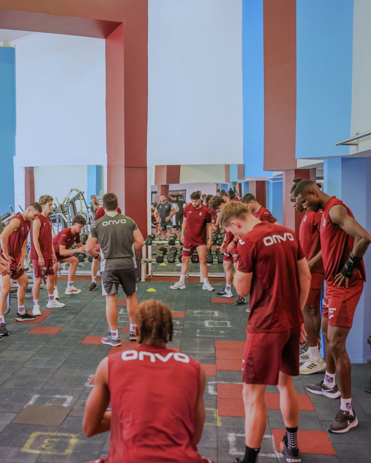 Teknik Yönetici Fatih Tekke idaresinde Mehmet Ali Yılmaz Tesisleri’nde gerçekleştirilen idmanda, oyuncular salonda kuvvet çalışması yaptı.