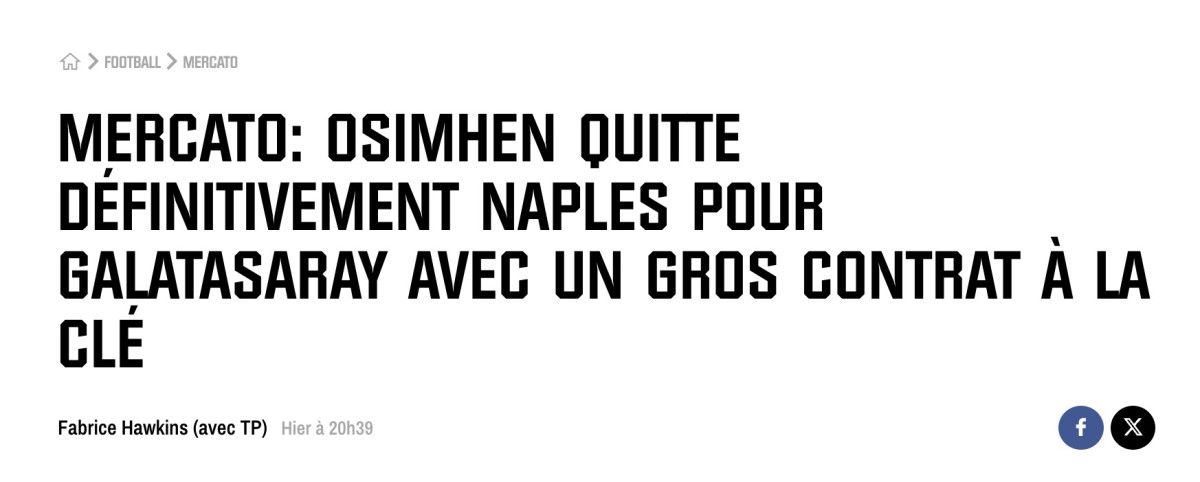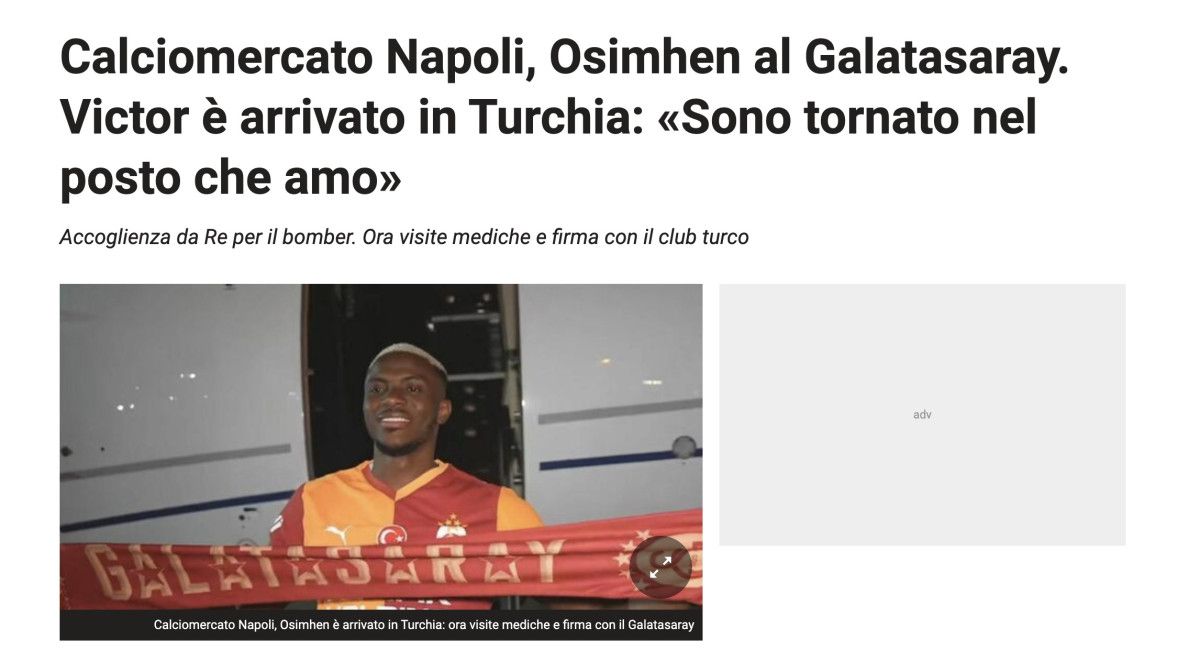 “Osimhen Türkiye’ye yanlışsız… Haftalardır süren kuvvetli görüşmelerin akabinde Nijeryalı golcü, Napoli’den ayrılıp Galatasaray’ın yeni oyuncusu olmaya hazırlanıyor. Osimhen ile uzun süren görüşmelerin tamamlanmasıyla birlikte, forvet oyuncusu artık Galatasaray’da yeni bir maceraya, bu sefer kiralık değil, kalıcı bir kontratla başlamaya hazır.”