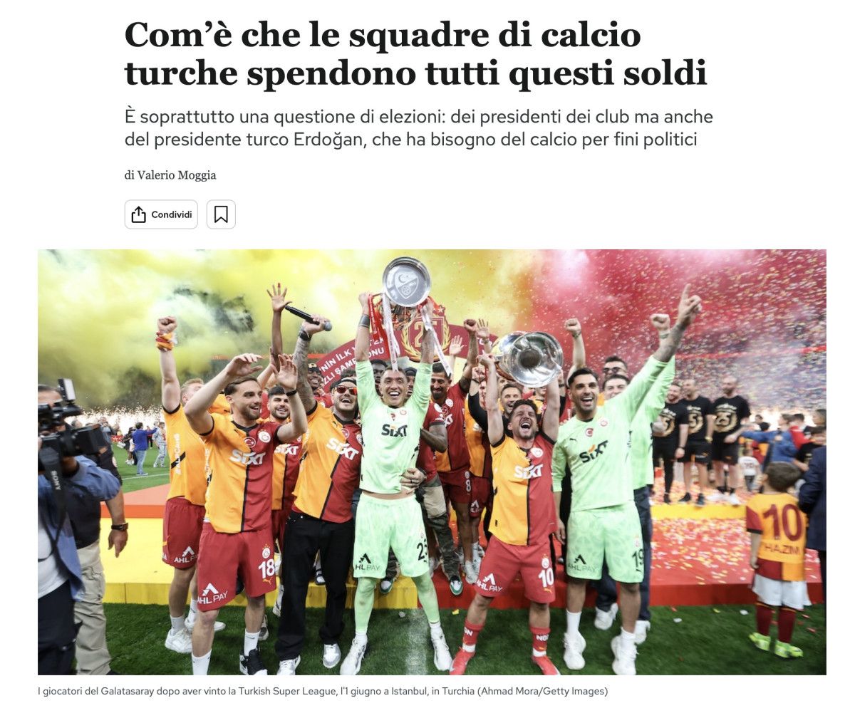 Sezonun en ilgi çeken transfer haberlerinden olan bu mutabakat, İtalyan basınından Il Post’ta “Türk futbol ekipleri bu paraları nasıl harcıyor? “ başlıklı bir tahlile bahis oldu.