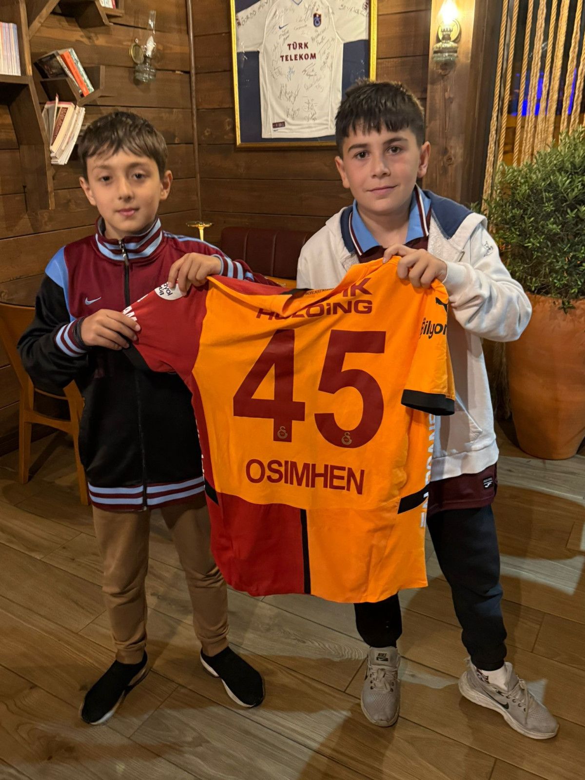 Karşılaşmanın akabinde 11 yaşındaki Trabzonspor taraftarı Mert Yılmaz, sarı-kırmızılı grubun Nijeryalı golcüsü Victor Osimhen’den maçta giydiği formasını aldı.