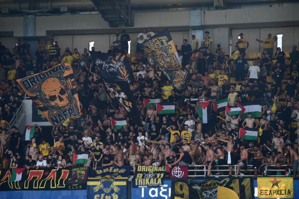 Bazı AEK taraftarlarının, Filistin bayrağı taşıdığı için stadyuma girmeden gözaltına alındığı belirtilirken, İsrail bayrağı taşıyan rakip ekibin taraftarları ise rahat bir formda kendilerine ayrılan kısma ulaştı.