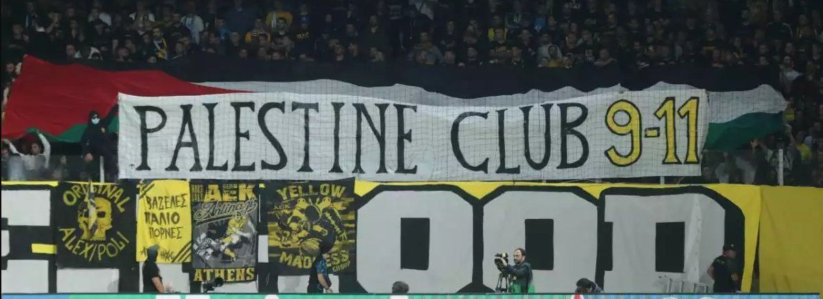 Atina takımının taraftarları, “Kahrolsun İsrail, yaşasın Filistin!” tezahüratı atarken, konuk grubun birtakım taraftarları İsrail bayrağı açarak konut sahibi taraftarları provoke etmeye çalıştı.