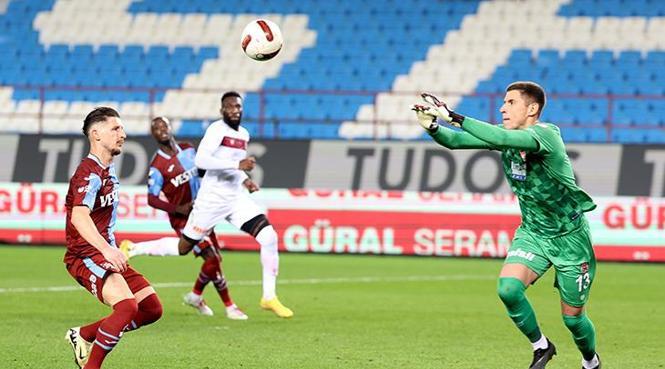 Trabzonspor atağında Umut Güneş ceza sahası dışı sağ çaprazından vuruşunu yaptı, kaleci Nikolic topu çıkardı.