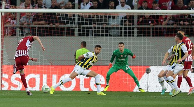 Fenerbahçe, kendi yarı alanında paslaşırken çıkmakta zorlanınca Olympiakoslu oyuncular topu kaptı ve Fortounis’in vuruşunda skor 1-0’a geldi.